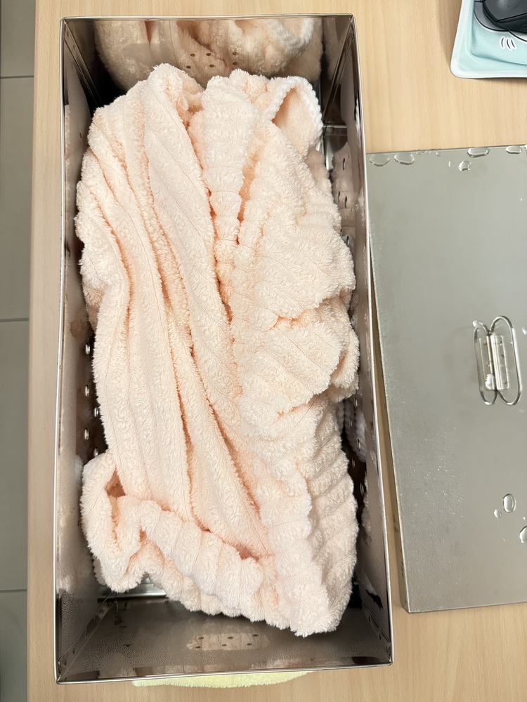 將使用過的毛巾做完第一次洗脫烘高溫殺菌之後