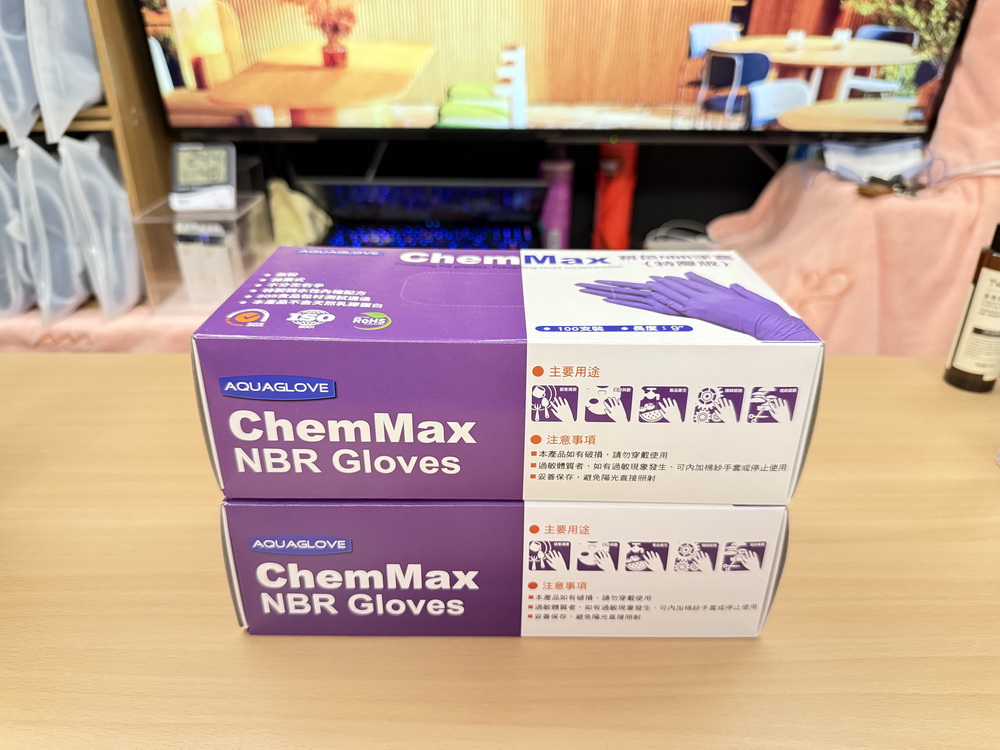 按摩時一定配戴手套,使用耐酸鹼不含乳膠無粉加厚手套(保護肌膚不過敏) |